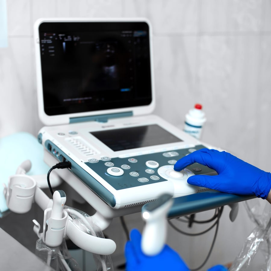 With ultrasound imaging, we expose part of the body to high-frequency sound waves to produce images of the inside of the body.